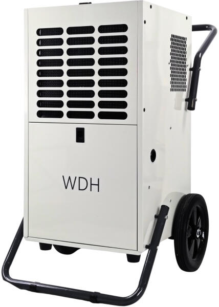 Ipari páramentesitőWDH-80B párátlanitó akár 95 l /nap páramentesitő teljesitménnyelA WDH-80B épitési száritó lenyűgöző teljesitményével és rendkivül egyszerű kezelhetőségével lehetőségeket teremt a professzionális épitési száritás terén. Ez a professzionális készülék 35 °C-on állandó 95 % páratartalomnál akár 95 liter vizet is eltávolit naponta, ami ideális megoldássá teszi nagy felületek gyors száritásához és vizkárok gyors enyhitéséhez.  A robusztus fémház stabilitást és tartósságot biztosit a mindennapos, ipari környezetben, a beépitett, kalibrált (MID) fogyasztásmérőnek (kW/h-mérő) köszönhetően pedig mindig pontosan szemmel tarthatja az üzemeltetési költségeket. A fogantyúknak és a kerekeknek köszönhetően a szállitás egyszerű, a speciális gumitalpaknak köszönhetően pedig két páramentesitő egymásra helyezhető. A ...